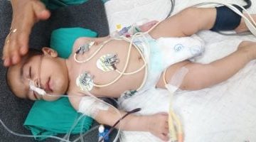 الرضيع فهد الجبرى يصارع الموت بخيام غزة بين البرد وضعف التجهيزات الطبية.. صور
