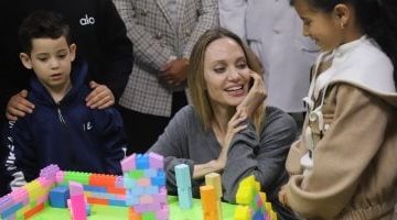 أنجلينا جولي تترك السجادة الحمراء وتجلس على الأرض لدعم أطفال غزة.. صور